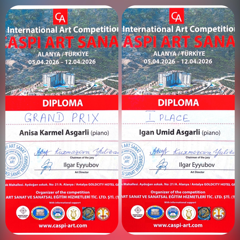 05–12 aprel tarixlərində Türkiyə Respublikasının Alanya şəhərində keçirilmiş I Beynəlxalq “Caspi Art Sanat” müsabiqə-festivalında Azərbaycan Milli Konservatoriyası nəzdində Musiqi Kollecinin tələbələri uğurla iştirak edərək yüksək nəticələr əldə etmişlər.Fortepiano ixtisası üzrə I kurs tələbəsi Anisa Karmel Əsgərli “Grand Prix” mükafatına layiq görülmüş, III kurs tələbəsi İqan Ümid Əsgərli isə I yerə sahib olmuşdur.Müsabiqənin münsiflər heyəti Azərbaycan, Türkiyə, Rusiya Federasiyası, Ukrayna, Qazaxıstan, Moldova və Rumıniyanı təmsil edən nüfuzlu mütəxəssislərdən ibarət beynəlxalq tərkibdə formalaşdırılmışdır. Kollecin müəllimi Camalə Abdinzadə müsabiqədə münsiflər heyətinin üzvü qismində iştirak etmişdir.