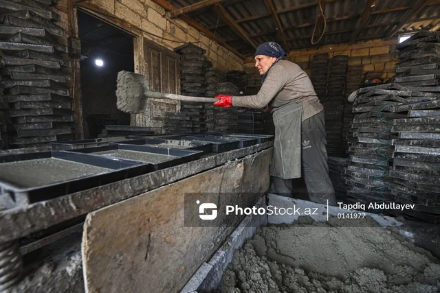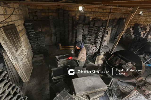 Bülbül Babayeva artıq 15 ildir ki, tamet daşları istehsal edən sexdə çalışır.