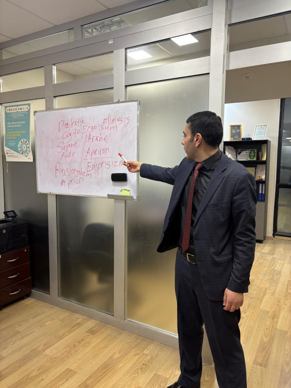 • Antik Yunanıstanda Elmin Doğuşu: Məruzəçi elmin fəlsəfədən ayrılmadığı dövrdə Thalesin ilk filosof və alim kimi rolundan bəhs edib. Thales və Anaximandrosun "arkhe" (varlığın ilk əsası) problematikasına yanaşmaları, kainatın mənşəyini mifologiya ilə deyil, rasionallıqla izah etmə cəhdləri tələbələrə ətraflı izah edilib.