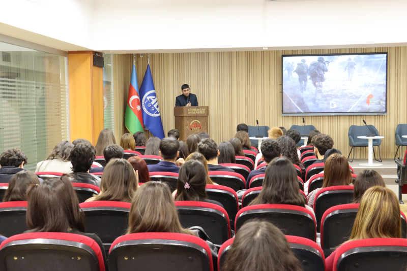 Azərbaycan Universiteti Tələbə Gənclər Təşkilatı (TGT) tərəfindən Xocalı faciəsinin 34-cü ildönümünə həsr olunmuş tədbir keçirilib. Tədbir günahsız Xocalı soyqırımı qurbanlarının xatirəsinin yad edilməsi və faciə həqiqətlərinin bir daha diqqətə çatdırılması məqsədilə təşkil olunub.ANmedia.az xəbər verir ki, tədbirin açılışında çıxış edən Siyasi və ictimai elmlər kafedrasının müdiri, siyasi elmlər üzrə fəlsəfə doktoru, dosent Elvin Talışınski Xocalı soyqırımının tarixi və faciənin törədilmə prosesi haqqında tələbələrə ətraflı məlumat verib. TGT sədri Hüseyn Rüstəmli isə çıxışında Xocalı soyqırımının dünya ictimaiyyətinə çatdırılmasının və beynəlxalq səviyyədə tanıdılmasının Azərbaycanın xarici siyasətinin əsas istiqamətlərindən biri olduğunu vurğulayıb.
